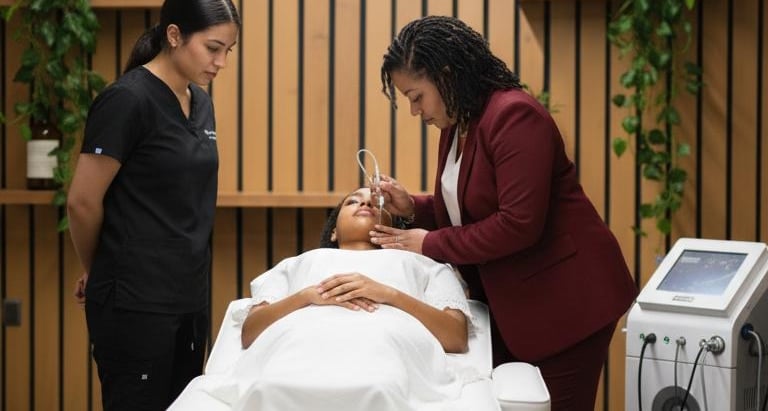 Aux esthéticien(ne)s diplômé(e)s souhaitant intégrer des soins dermatologiques avancés à leur carte.